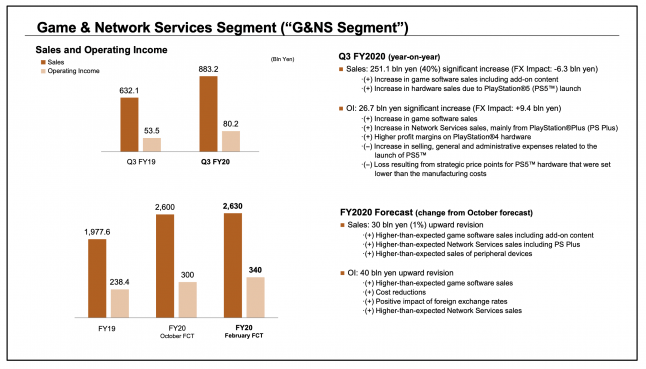 Based on its performance this quarter, Sony has (very marginally) upwardly revised its full-year forecasts, and is now expecting the G&NS segment to deliver net sales of 2.63 trillion yen ($25 billion) and operating income of 340 billion yen ($3.2 billion) by the end of the fiscal year on March 31, 2021.